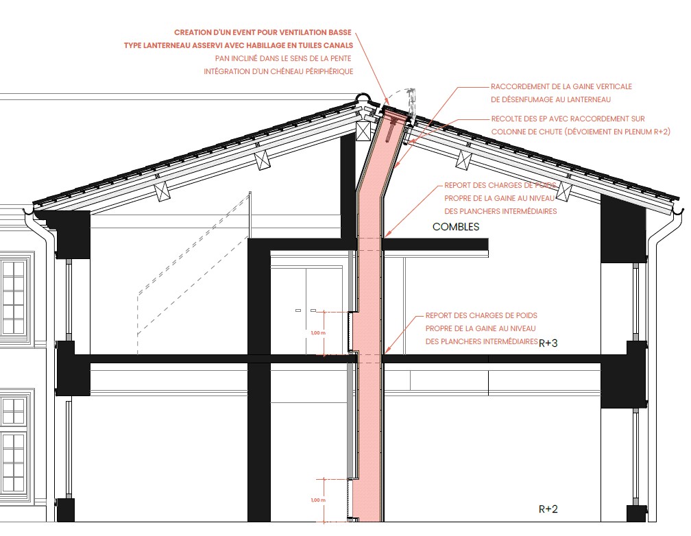 Émergences en toiture : Création d'émergences en toiture pour les VB et VH, en collaboration avec les services Patrimoine de l'UDAP (Unité Départementale de l'Architecture et du Patrimoine).