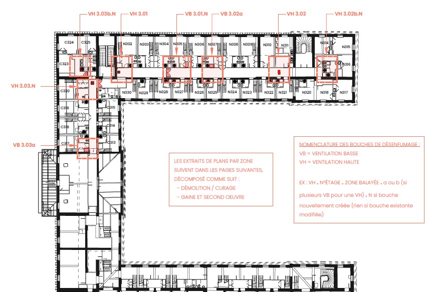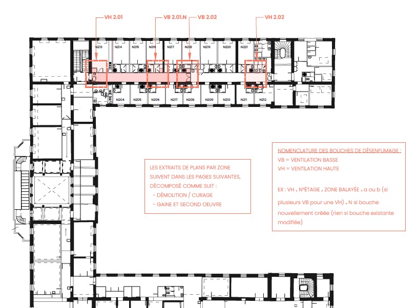 Mise en conformité réglementaire du système de désenfumage de la résidence étudiants, située aux niveaux R+2 et R+3 du bâtiment ancien du CNSMDL.